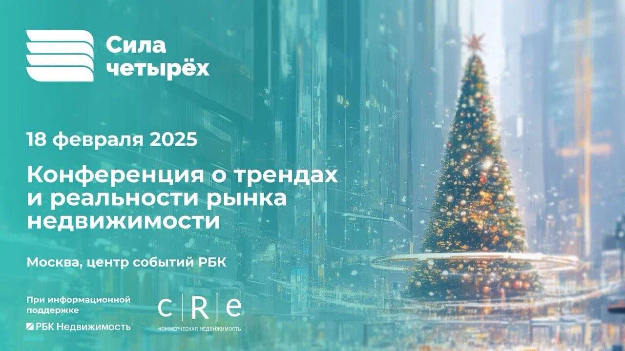 18 февраля 2025 года в Центре событий РБК пройдет стратегическая конференция «Сила четырех: тренды и реальности рынка недвижимости».