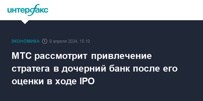 «Это (конечная доля МТС — ИФ) будет зависеть, на самом деле, от многих факторов. Пока мы рассматриваем в том числе и приход стратега в эту область (после IPO — ИФ), потому что банк развивается хорошо. Мне кажется, что после подтверждения цены, которая будет в результате IPO, тут стратегии могут быть разные», — сказал Николаев.
